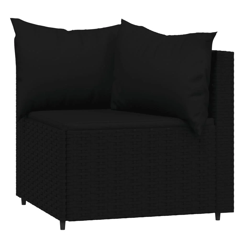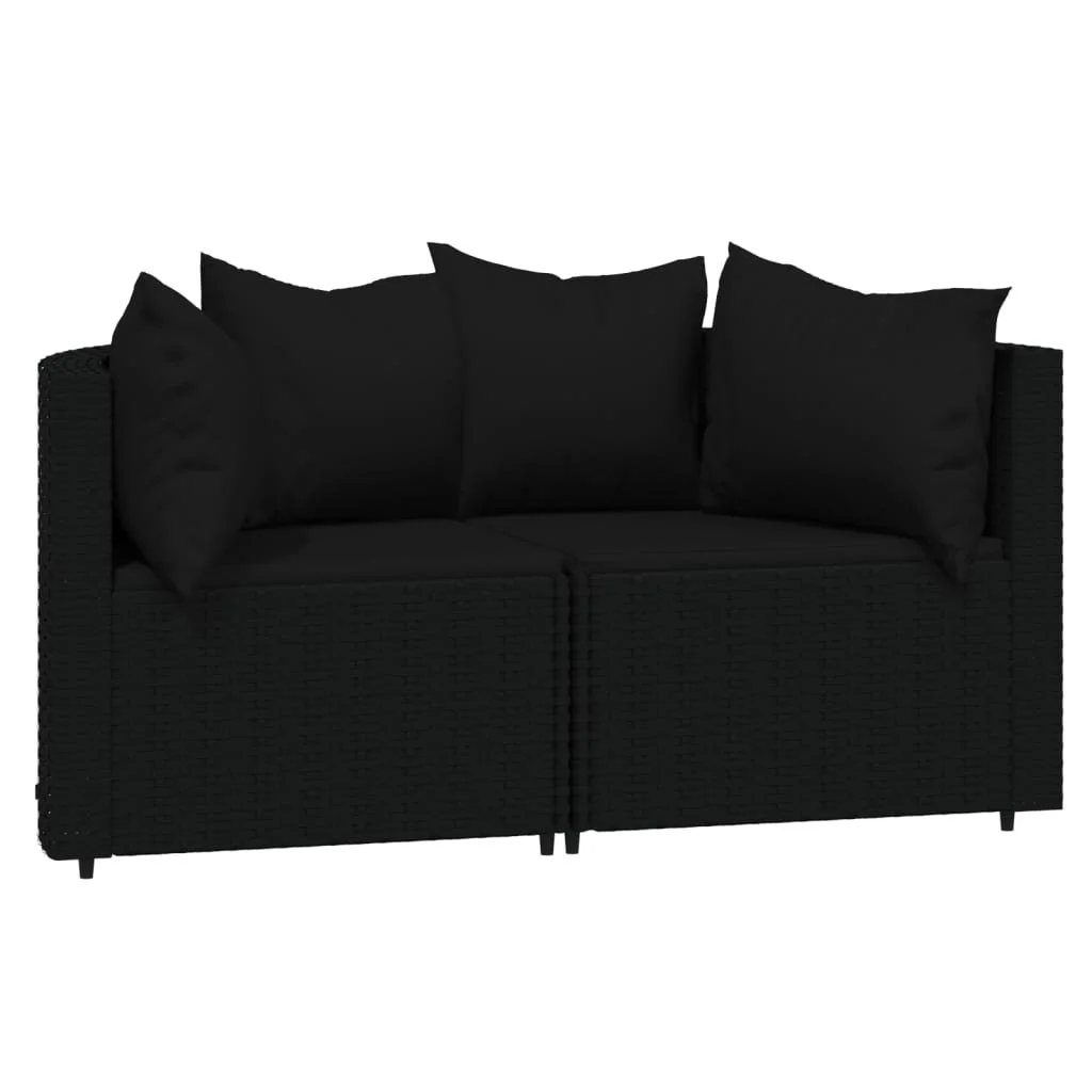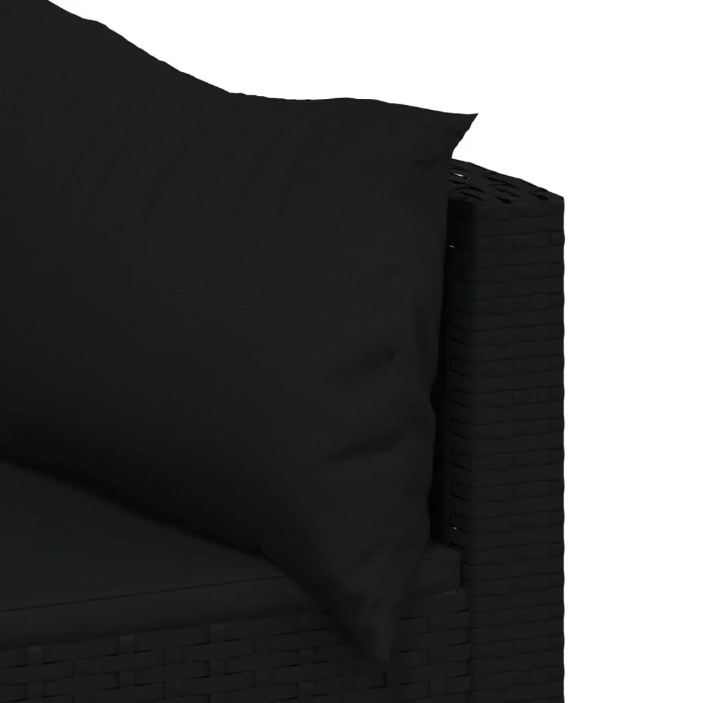 3 Piece Patio Lounge Set with Cushions Black Poly Rattan